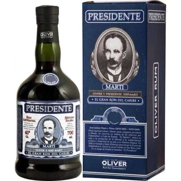 Il Presidente Rum Marti 19 Anni, prodotto dalla distilleria Oliver & Oliver, rappresenta un’eccezionale espressione di rum “latino” progettato per competere nei mercati internazionali più esigenti. Profondo, straordinario ed armonico, sono tre aggettivi che descrivono perfettamente questo rhum dedicato alla memoria di José Julián Martí Pérez, uno dei più grandi eroi nazionali di Cuba.